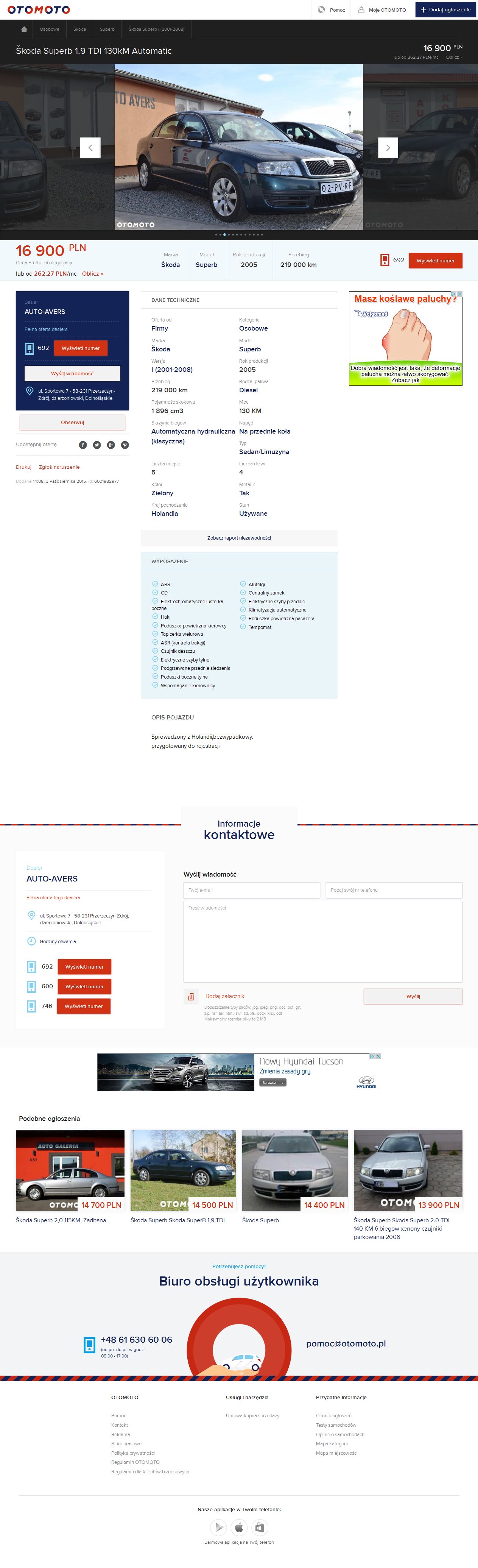 Škoda Superb 1.9 TDI z 2005 roku, sprowadzone z Holandii do miejscowości Przerzeczyn-Zdrój: otomoto.pl/oferta/skoda-superb-1-9-tdi-1...bHX3.html#cbdd82332d