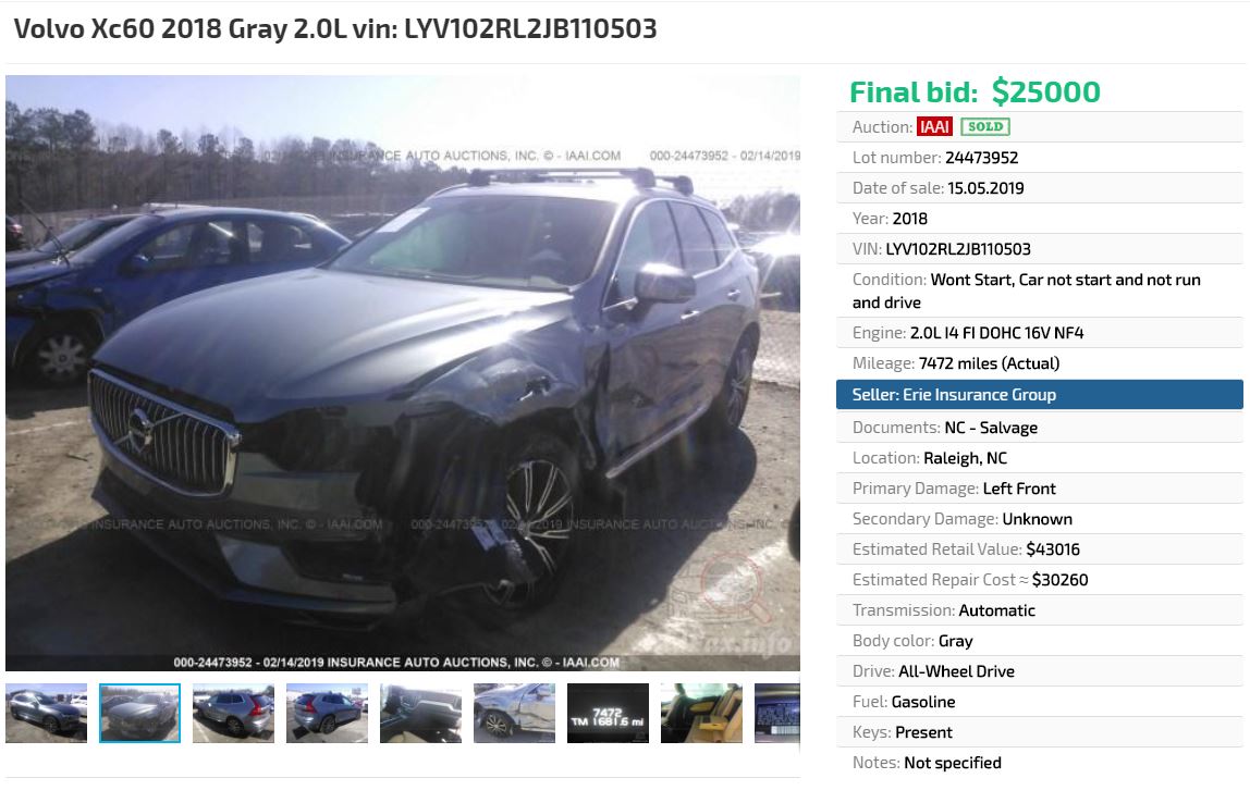 Volvo XC-60 WS 7727C 2018 LYV102RL2JB110503 2020/07/21 16:09 #90100