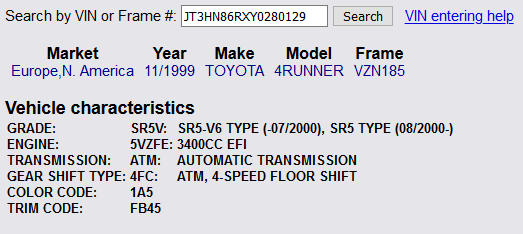 TOYOTA 4RUNNER 2000 VIN: JT3HN86RXY0280129