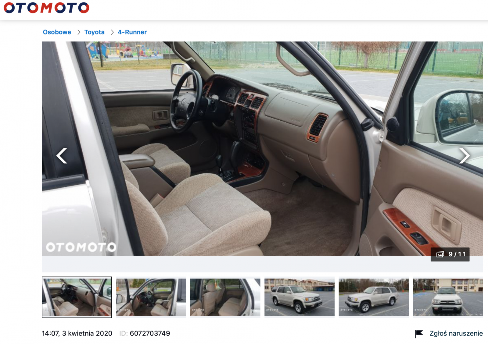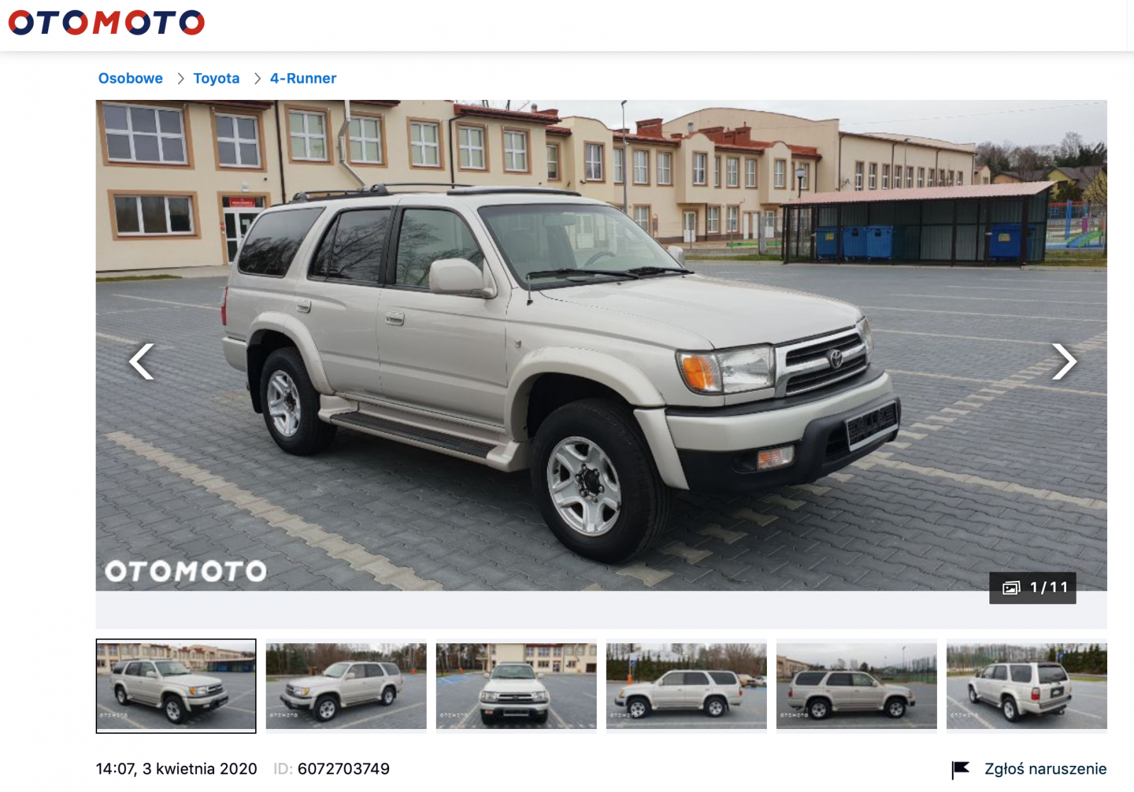 Wciąż poszukuję Toyoty 4Runner. Na otomoto trafiłem na poniższe ogłoszenie. www.otomoto.pl/oferta/toyota-4-runner-4-...v6-4x4-ID6CYrEF.html