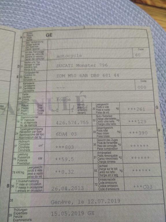 Poszukuje moto do odbudowy na własny użytek, Znalazłem moto DUCATI MONSTER 796 z 2013 r po wypadku, uszkodzone felgi, oberwana lampa, poobrywane przewody przy kierownicy. Koleś który sprzedaje kupił do od polskiego handlarza , który przywiózł go ze Szwajcarii. Kupiłem raport auto DNA a w nim nie zgadza się model i rok produkcji, poza tym żadnych innych informacji. Inne dekodery VIN wskazują jeszcze na inny model, jeden wskazuje właściwie model i rok produkcji (vindecoder.eu). Koleś , który sprzedaje wysłał mi zdjęcia dowodu rejestracyjnego, jest to duplikat na którym nie ma numeru rejestracyjnego , jest też pieczątka po francusku "ANNULLE " , która chyba świadczy o wyrejestrowaniu pojazdu. Koleś posiada jeszcze fakturę od handlarza na której są jakieś adnotacje dotyczące , akcyzy, cła , podatku itp ale nie che jej udostępnić. Czy może być tak, że na fakturze będzie jakiś zapis, który uniemożliwi rejestrację pojazdu w Polsce? Załączam raport i foto dowodu.