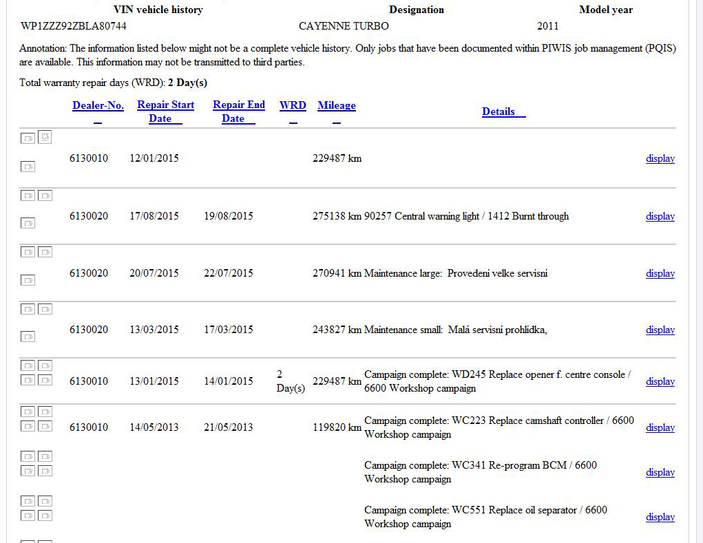 Samochód miał wypłacaną szkodę z ubezpieczenia w Czechach w dniu 10.04.2014 oraz 11.2015