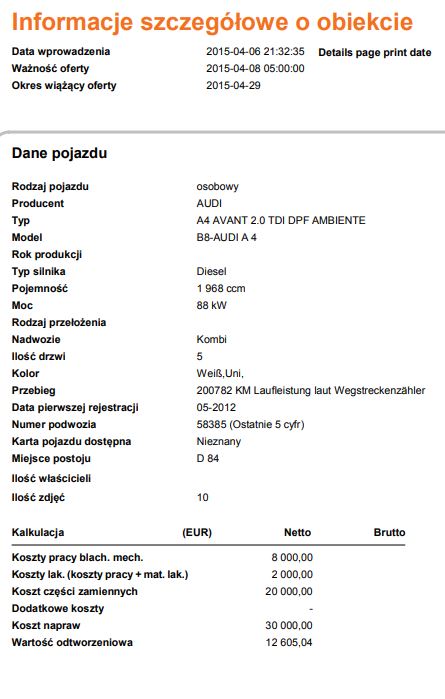 po szkodzie w 2015r z przebiegiem 200782 km.