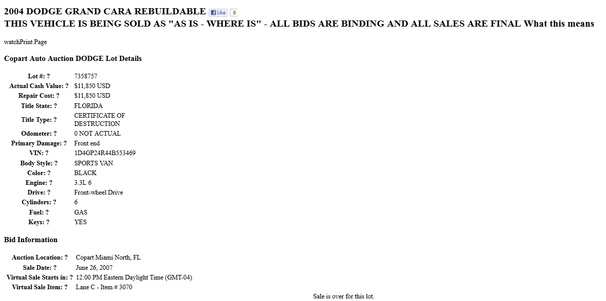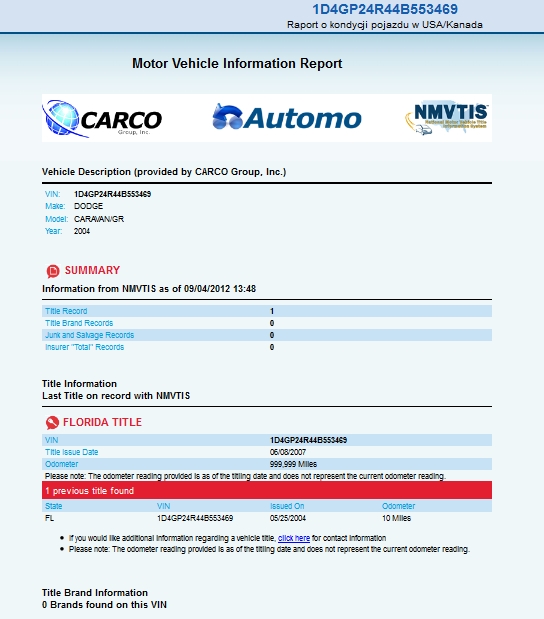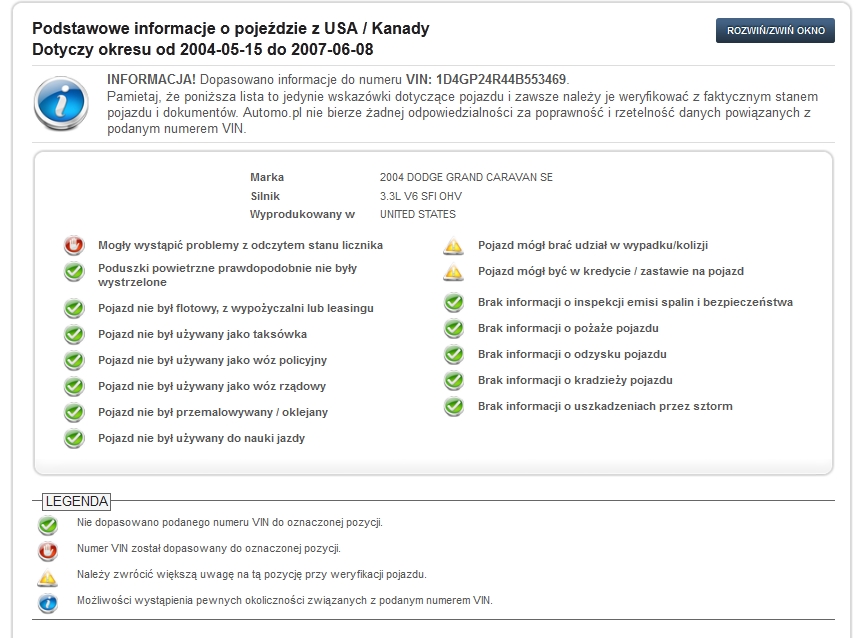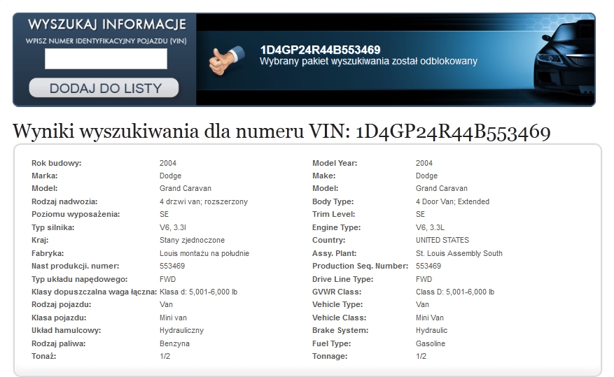 Odp: DODGE GRAND CARAVAN 2003 (4) - VIN: 1D4GP24R44B553469 (woj. podlaskie, wsazania licznika około 43 000 mil ;)