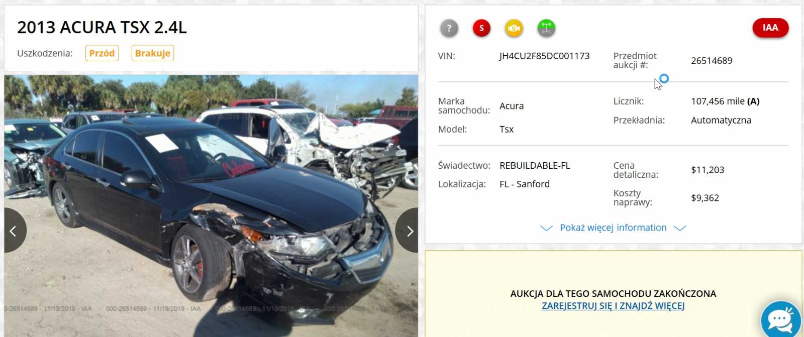 TEMAT: Honda Accord - Acura TSX: JH4CU2F85DC001173