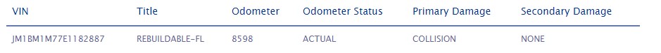 Ładna mazda ale niestety w USA była trochę rozbita.
