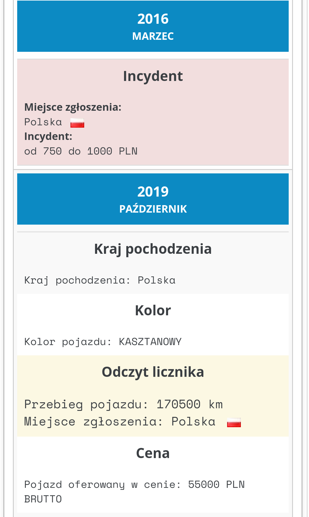 -auto nie jest bezwypadkowe - według zapewnień sprzedającego malowane powtórnie lewe nadkole i maska natomiast według raportu i miernika naprawiana również prawa strona, tylne nadkole 250-600, wnęka drzwi podwójny lakier, górny słupek nad tylnymi drzwiami 600-1580 mikronów, dalej nie sprawdzałem bo nie było sensu.