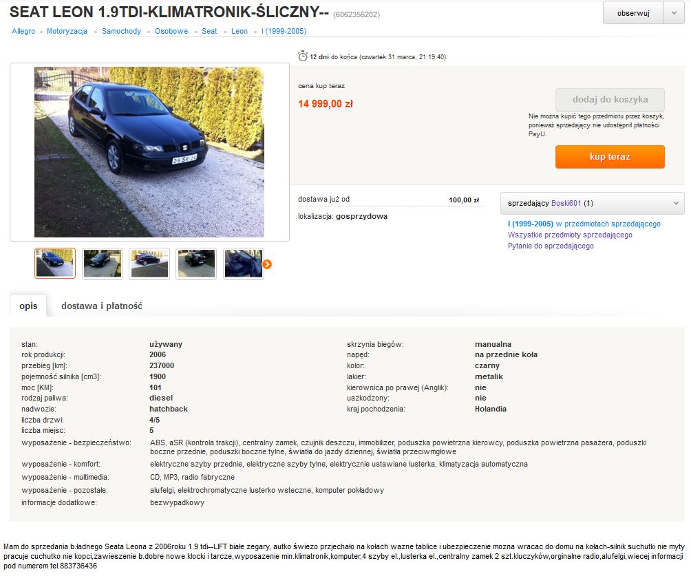 Seat Leon 1.9 TDI, sprowadzony z Holandii.