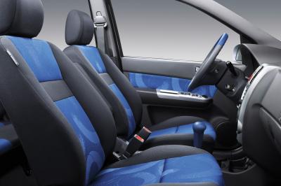 Najważniejszym elementem dla stojącego w korkach kierowcy jest wnętrze samochodu, które swą oryginalnością i przytulnością ukoi zszargane podczas porannego dojazdu do pracy nerwy. Projektanci koncernu Hyundai wiedzieli, że nowe kolory wnętrza pomogą wywołać radosny nastrój podróżujących. Czerwone lub niebieskie elementy tapicerki siedzeń, drzwi, dźwigni zmiany biegów i koła kierownicy znakomicie uzupełniają żywe kolory nadwozia Getza, tworząc dość nietypowe, a jednocześnie bardzo udane połączenie.